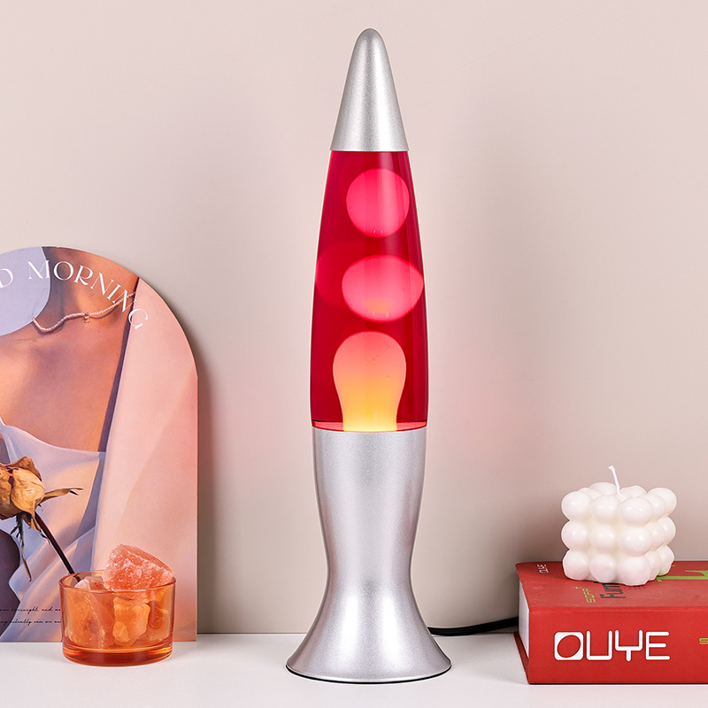 مصباح الحمم الرمادي مقاس 16 بوصة عبارة عن قابس طاقة عالي. غلاف ألومنيوم أرجواني أرجواني، شمع أرجواني، عند الإضاءة، مصباح شمع أرجواني نقي.