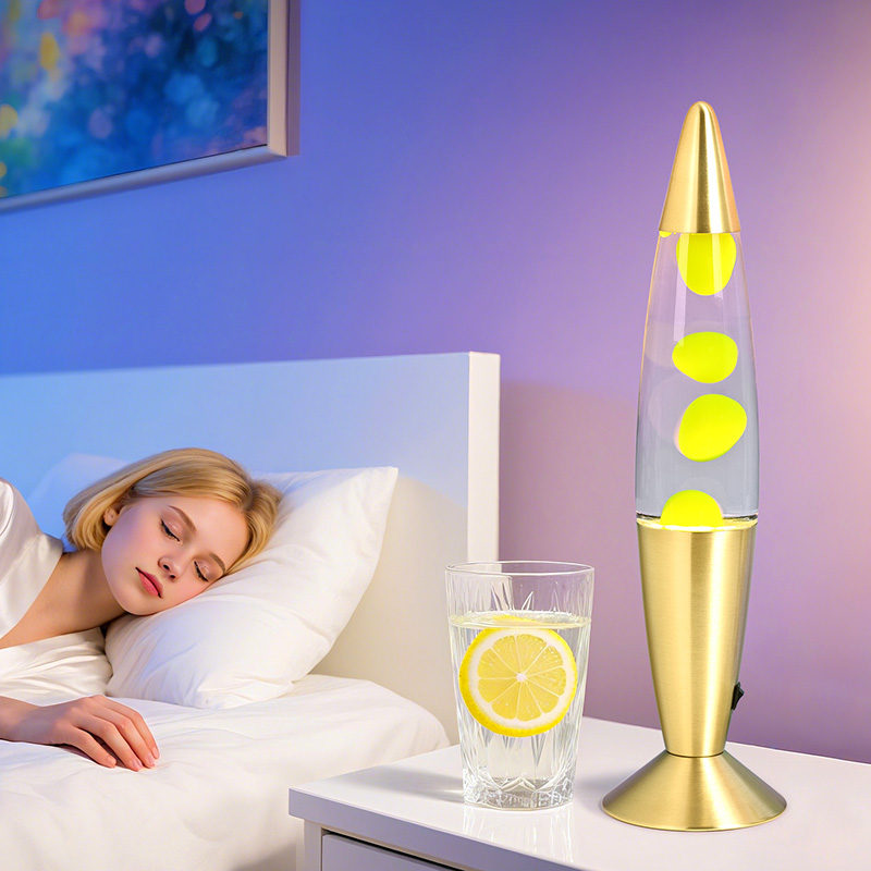 24 فولتمصباح شمع برتقالي فاخر مقاس 16 بوصة يحتوي على ماء نقي داخل الزجاج الشفاف وشمع أخضر بالداخل. بعد تسخينه، يطفو الشمع بشكل غير منتظم في الماء، وهو أمر محل تقدير كبير.