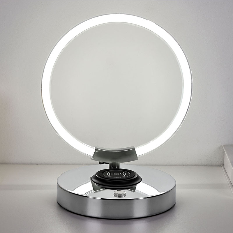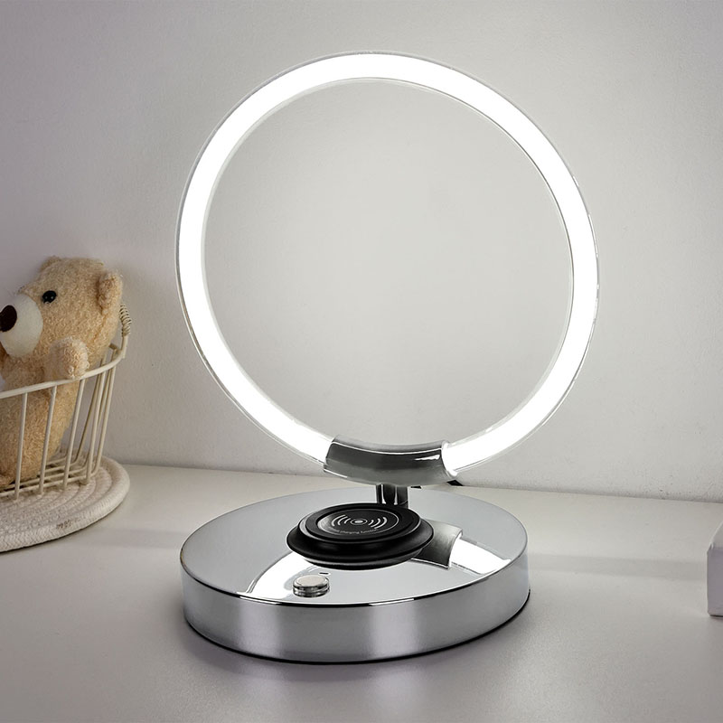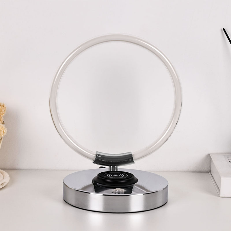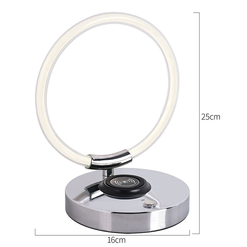 مصباح مكتبي LED بأشكال حلقية 360 درجة مع شاحن لاسلكي.
