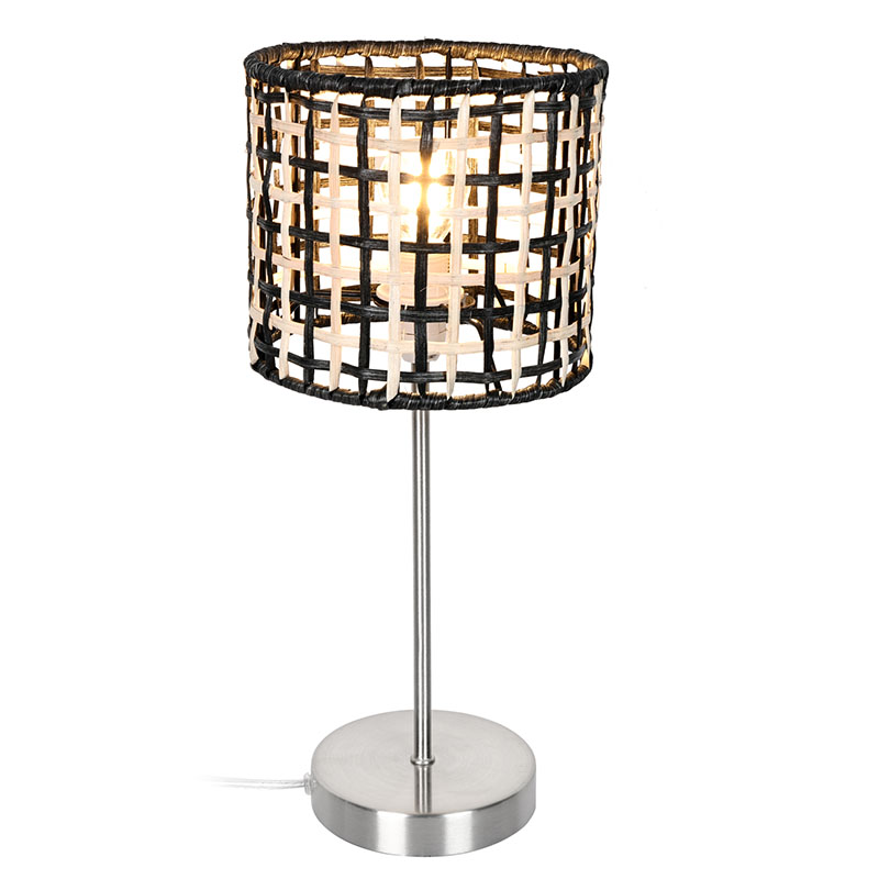 مصباح طاولة من الخيزران مع قاعدة معدنية