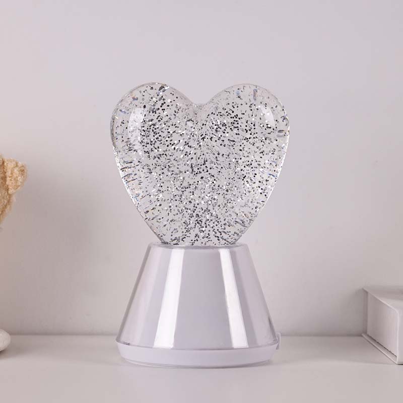 ضوء ليلي سائل لامع متغير اللون مع ظل على شكل قلب. تتميز بكرة زجاجية رائعة مملوءة بسائل غامض، يطفو فيها الترتر المتلألئ. بأعجوبة، ضوء ليلي سائل لامع متغير اللون مع ظل على شكل قلب، كما لو كان يرقص في عالم سحري.