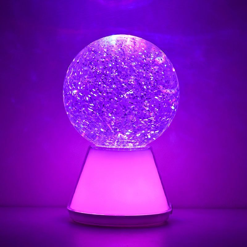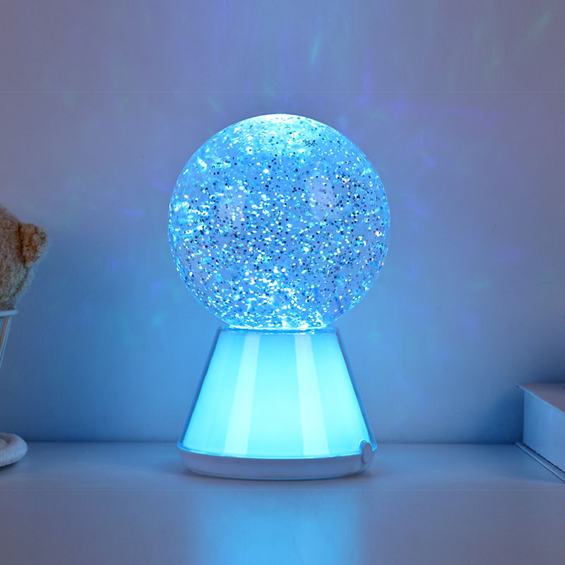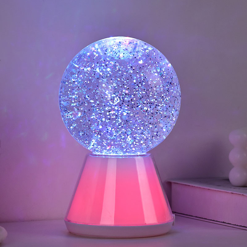 في الليل الخافت، يضيء ضوء الكرة الكريستالية الليلي مثل نجمة لامعة، ينبعث منها ضوء ناعم وساحر.