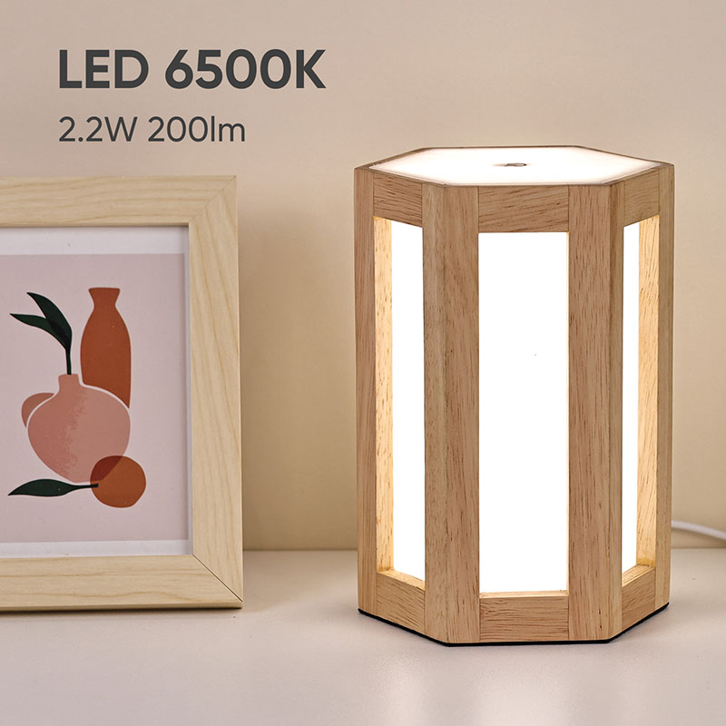 لإضافة الدفء والأناقة، فإن الجسم الرئيسي للإضاءة الليلية مصنوع من خشب طبيعي عالي الجودة، مع رؤية واضحة لكل بوصة من حبيبات الخشب. الهيكل الداخلي وبعض التفاصيل لهذا المصباح الليلي مصنوعة من مواد بلاستيكية متقدمة، والتي لا تضمن فقط خفة المصباح ومتانته، بل تعزز أيضًا حداثته الشاملة وحس الموضة.