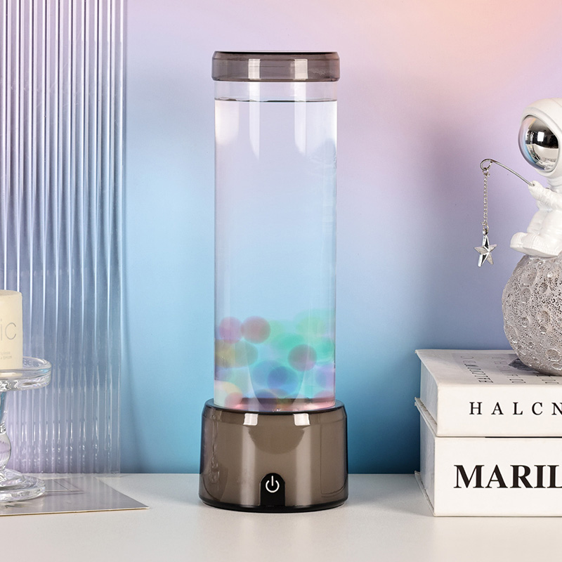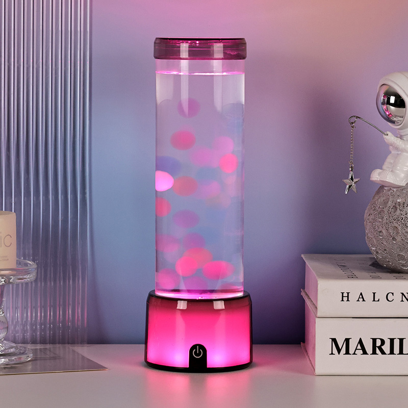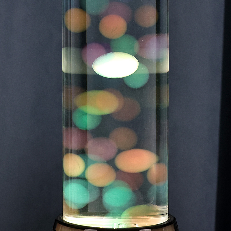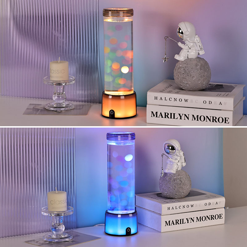 يمنح الشكل الأسطواني الطويل والأنيق للمصباح مظهرًا عصريًا وبسيطًا يكمل مختلف الأنماط الداخلية. يسمح جسمها الشفاف برؤية كاملة للعناصر الداخلية، بما في ذلك قنديل البحر العائم وانعكاسات الضوء المتلألئة. تم تصميم السائل الداخلي خصيصًا لمحاكاة تدفق الماء، مما يعزز واقعية الحركة العائمة. ومع تغير ألوان مصابيح LED، يبدو أن قنديل البحر ينبض بالحياة، مما يضيف عمقًا وحركة إلى المشهد.