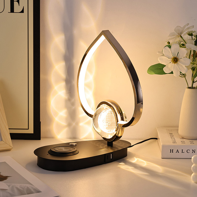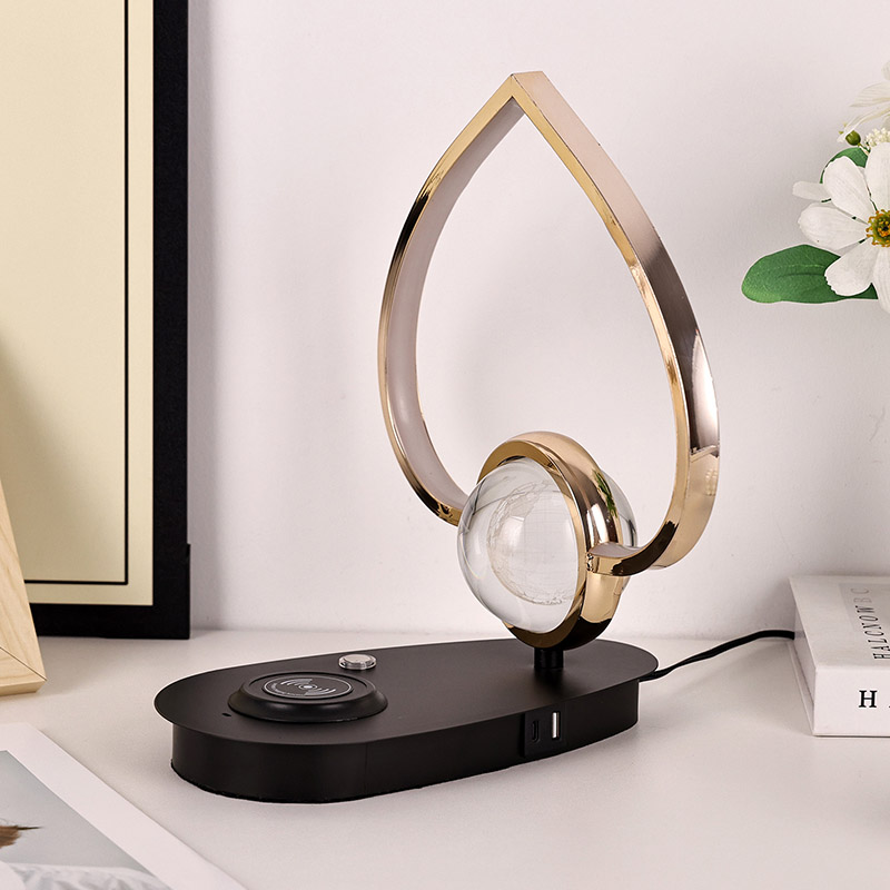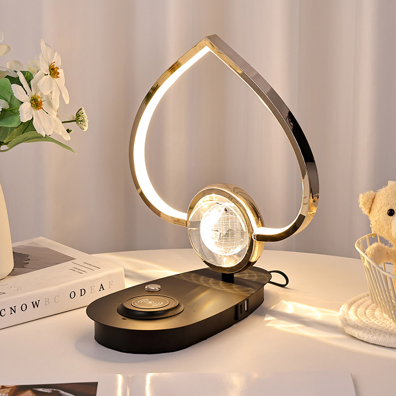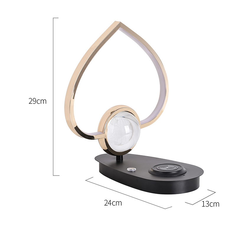 يحتوي مصباح مكتب LED بشاحن لاسلكي Earth مع غطاء على شكل قلب على شاحن لاسلكي للهاتف وشاحن بمنفذ USB