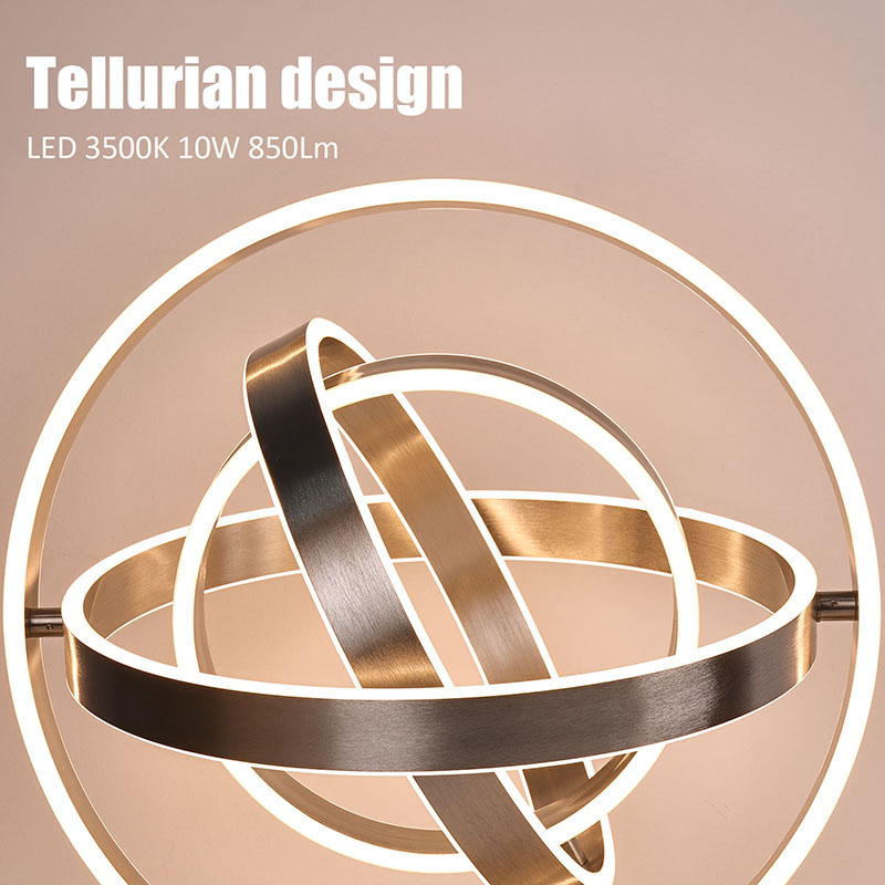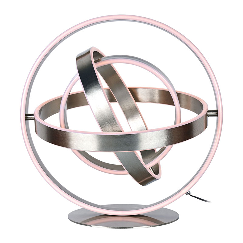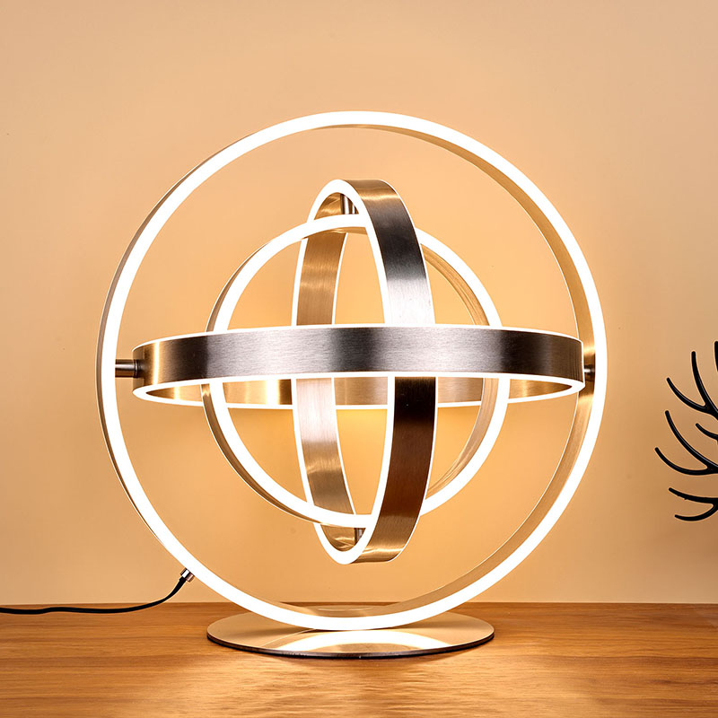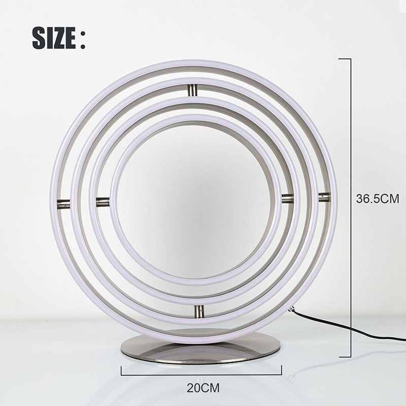 المصباح مكتبي رائعيتكون من مصابيح LED حلقية متعددة، مع مصابيح LED مقطوعة في كل محيط حلقي. يمكن أن يدور التصميم الحلقي إلى شكل كروي