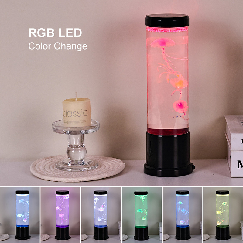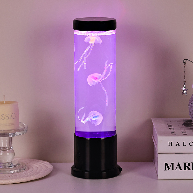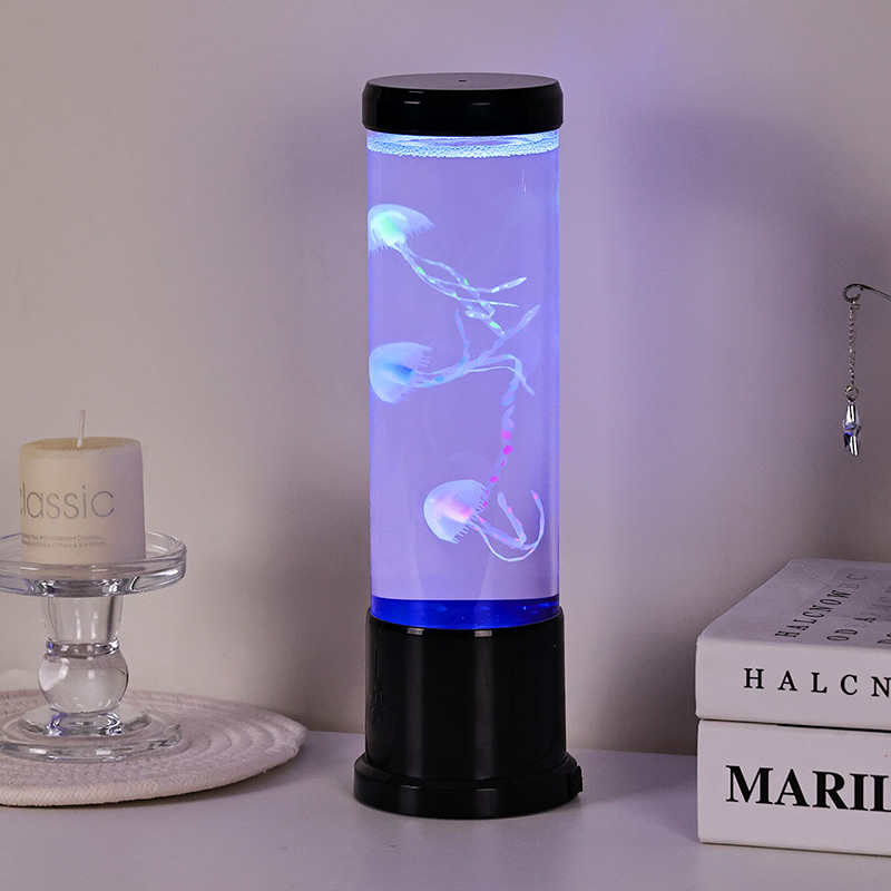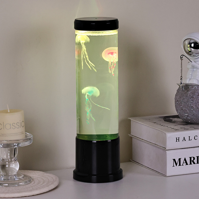 تصميم أنيق يلتقي بمصباح قنديل البحر LED المستوحى من الطبيعة يتميز بأسطوانة طويلة ونحيلة مصنوعة من أكريليك شفاف عالي الجودة يسمح برؤية واضحة تمامًا لقنديل البحر الرشيق بداخله. مغلفة في وسط سائل أزرق ناعم، تطفو ثلاثة قناديل بحر نابضة بالحياة بلطف وتنبض، وتضيء أجسامها الشفافة بأضواء LED ديناميكية متعددة الألوان. ويتحول التوهج اللطيف من خلال مجموعة من الألوان الهادئة - بدءًا من اللون الأزرق والبنفسجي في أعماق المحيطات إلى اللون الوردي والأخضر الناعم - مما يحاكي التلألؤ البيولوجي الموجود في بيئات أعماق البحار الحقيقية. تم تشطيب الجزء العلوي والقاعدة من البلاستيك الأسود اللامع، مما يمنحه مظهرًا عصريًا وبسيطًا يكمل أي نمط ديكور.