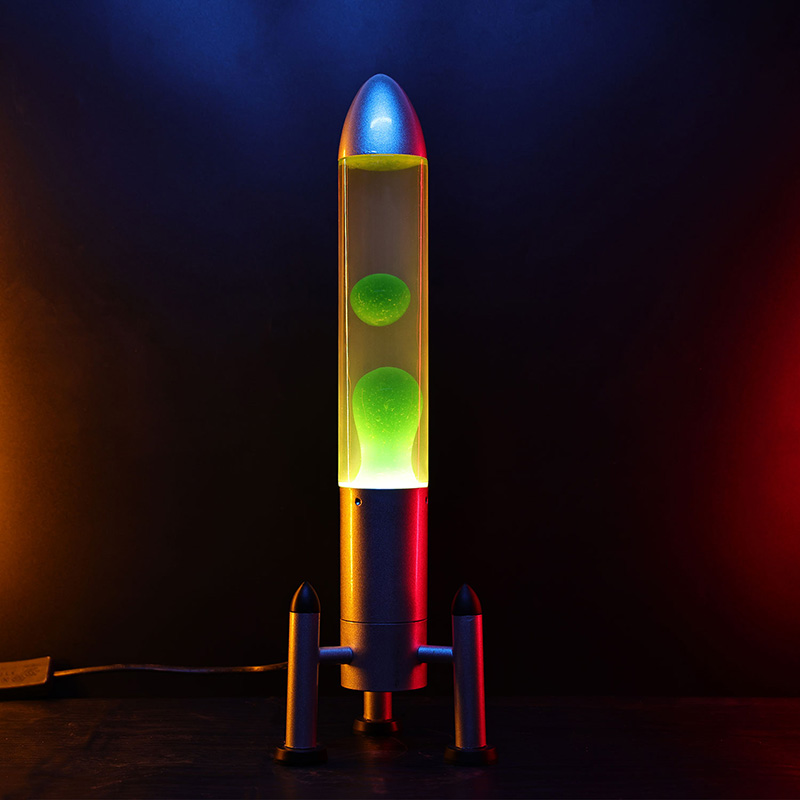 يحتوي مصباح الشمع على شكل صاروخ على شكل صاروخ على ماء نقي داخل الزجاج الشفاف والشمع الأخضر في الداخل. بعد تسخينه ، يطفو الشمع بشكل غير منتظم في الماء ، وهو موضع تقدير كبير. مصباح rava مع شكل المقبس