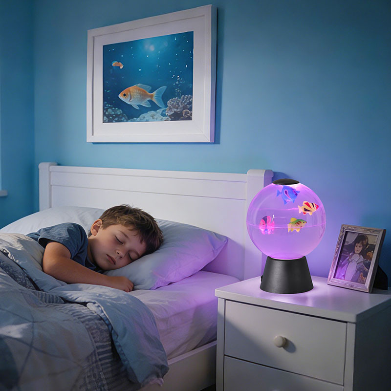 لمسة فريدة من نوعها في أي مكان، تجمع كرة السمكة هذه بين تأثيرات الإضاءة المهدئة والرسوم المتحركة المرحة