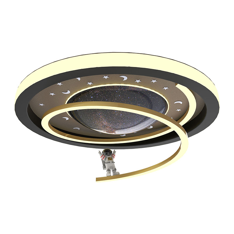 تصميم مصباح السقف مبتكر، حيث يوجد مجسم رائد فضاء داخل الكرة الزجاجية، وتقطع حافة مصباح السقف في ضوء LED المنبعث