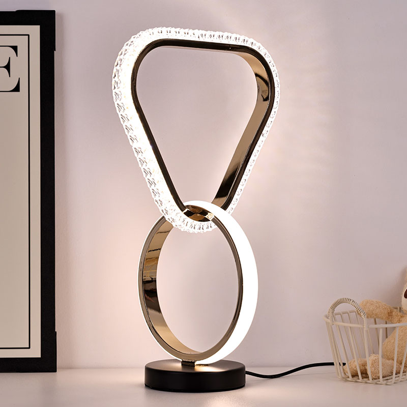 مصباح مكتب LED مع ظل دوائر ومثلثات لديكور المنزل بسيط وفاخر، ذو شكل منحني غير منتظم. يتكون المصباح المكتبي LED لجسم ديكور المنزل من مصباح شبه LED وقوس شبه معدني. المصباح المكتبي LED لديكور المنزل مناسب جدًا لوضعه على المنضدة أو بجانب السرير في مركز تسوق أو فندق، لأن التصميم فخم جدًا ومناسب جدًا للديكور