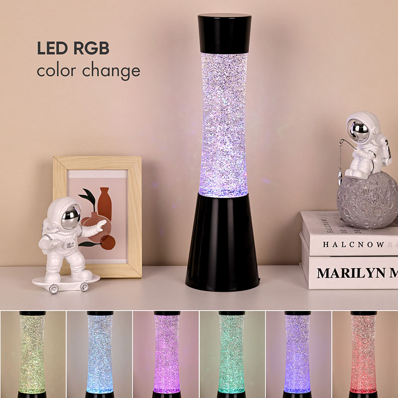 ميزة أخرى لهذا المصباح الليلي الصغير هي تصميمه السائل واللامع من الداخل. ويحتوي السائل على كمية كبيرة من اللمعان الذي يتألق تحت إضاءة الضوء، وكأن عدداً لا يحصى من النجوم تتلألأ في سماء الليل. مع تدفق السائل، سيتناثر اللمعان بشكل غير منتظم، مما يخلق تأثيرًا بصريًا يشبه الحلم. مصباح الحمم البركانية اللامع مع بطارية 3AAA لديه أيضًا وظيفة إضاءة ملونة RGB. من خلال تكنولوجيا LED المتقدمة، يمكن لتركيبات الإضاءة أن تصدر ضوءًا ناعمًا وموحدًا، وتضبط لون الضوء بحرية وفقًا للمشاهد والاحتياجات المختلفة. يمكنك اختيار اللون المفضل لديك أو جعل تركيبات الإضاءة تغير الألوان تلقائيًا لإنشاء وليمة بصرية ملونة.