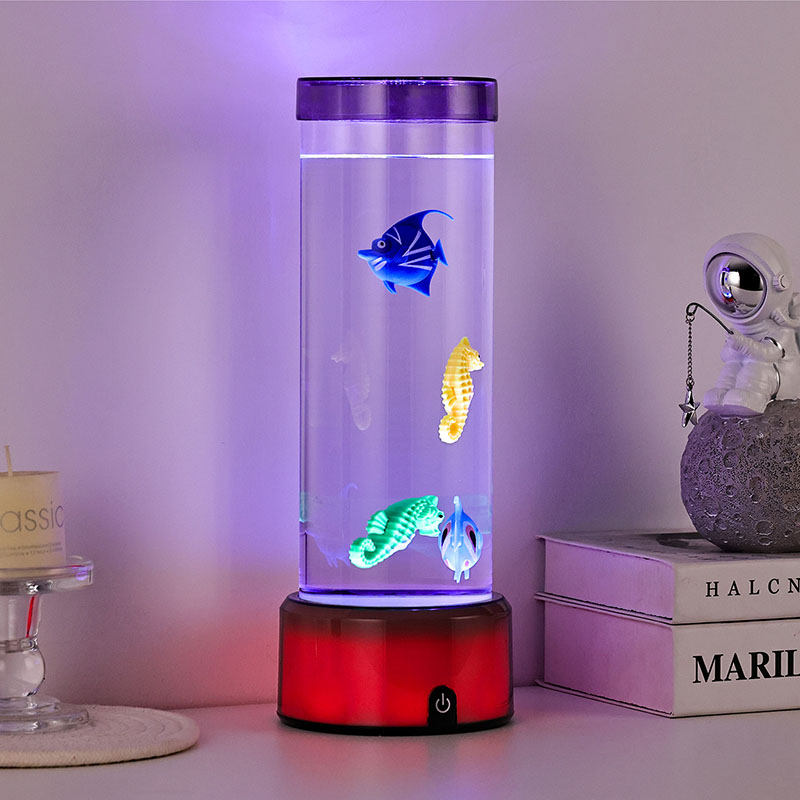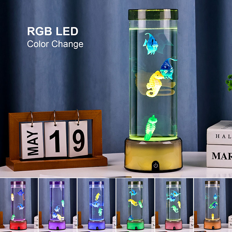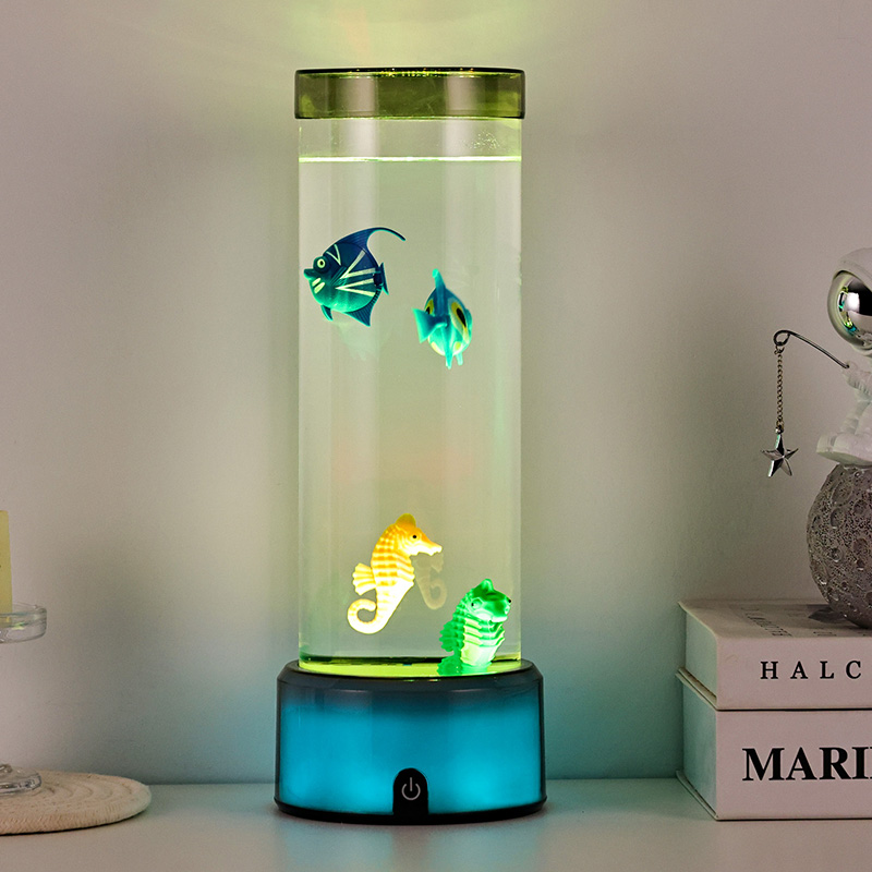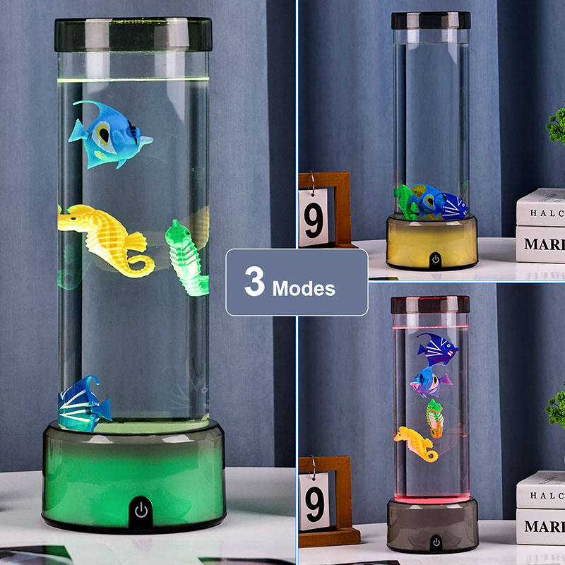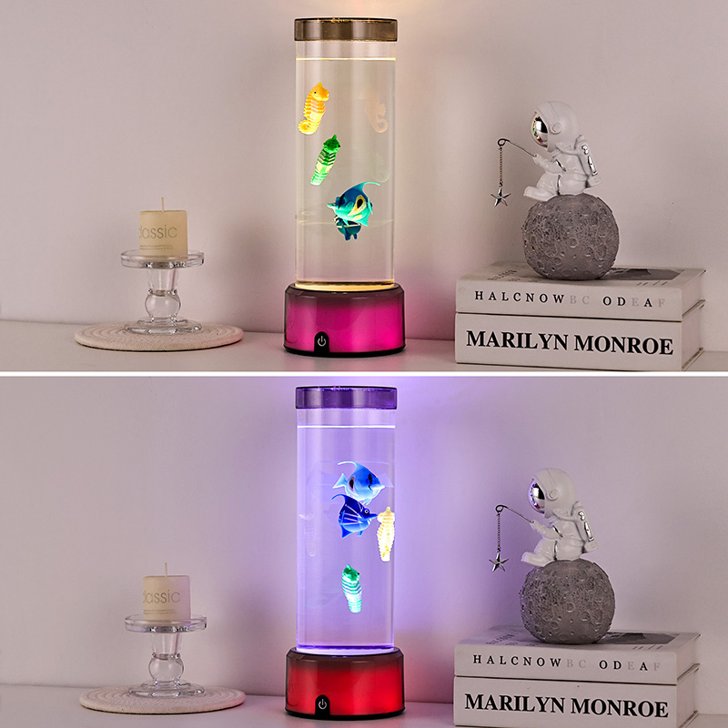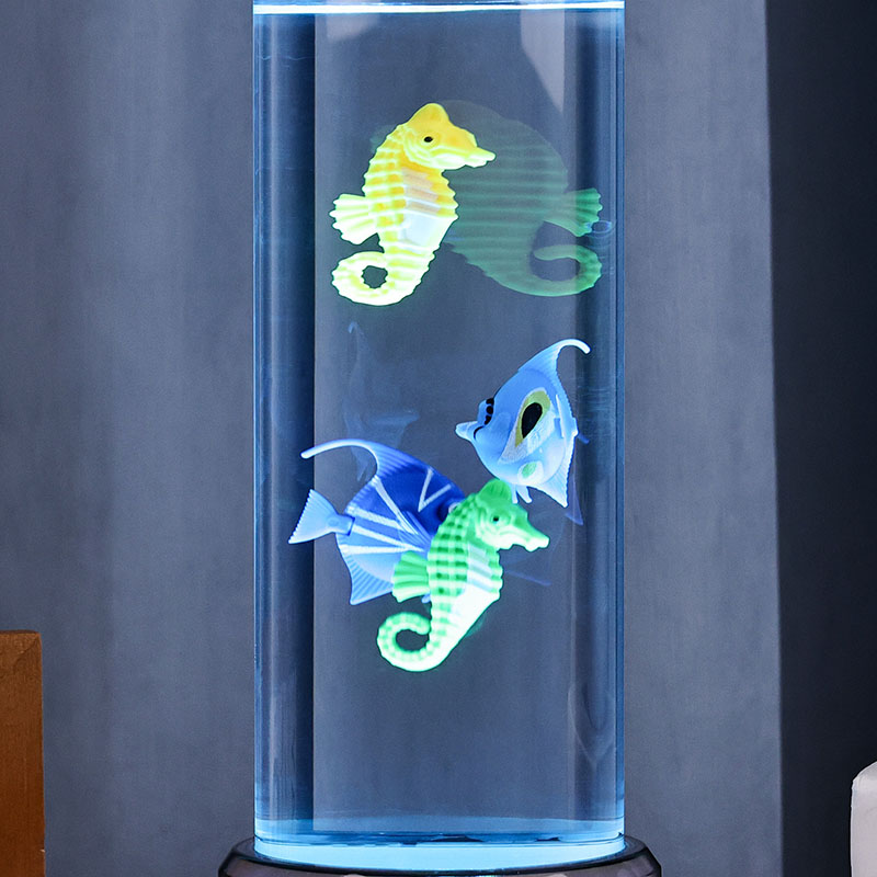 مظهرًا نابضًا بالحياة حيث أنها تطفو بلطف في الأنبوب المملوء بالسائل. شاهدهم وهم "يسبحون" عبر الألوان المتغيرة، ويلقيون انعكاسات جميلة على الأسطح القريبة ويحولون أي غرفة إلى واحة هادئة.