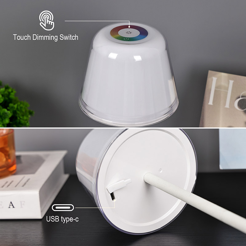 يمكن تحويل ضوء المصباح المكتبي تلقائيًا من RGB إلى ألوان مختلفة، أو تعديله يدويًا إلى ألوان مختلفة. بالطبع، إذا تم استخدامه كتركيبة إضاءة، فهناك أيضًا ضوء دافئ مع تعديل تعتيم لا نهائي يمكن استخدامه للقراءة. يتمتع المصباح المكتبي بنطاق أوسع من بيئات الاستخدام لأنه يأتي مع بطارية، لذلك يمكن إزالة رأس المصباح وحمله، أو إدخاله في زجاجة نبيذ للزينة. بالطبع، عندما يتم تجميع المصباح المكتبي، يمكن استخدامه كتركيبة إضاءة للقراءة