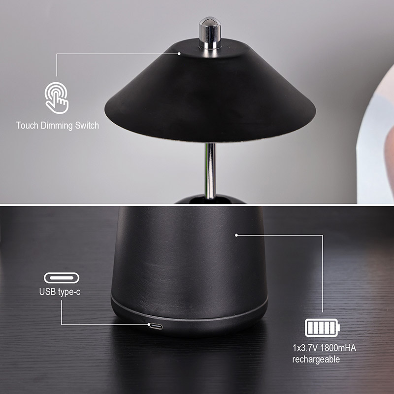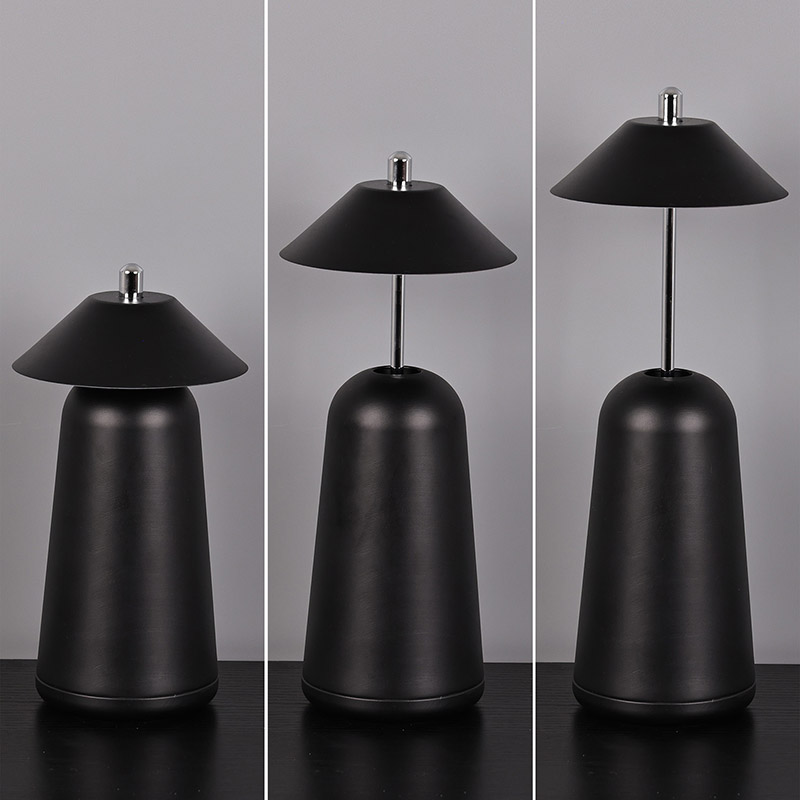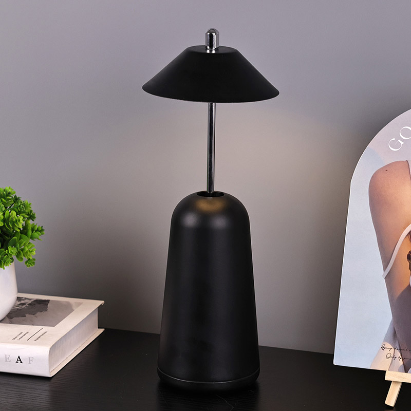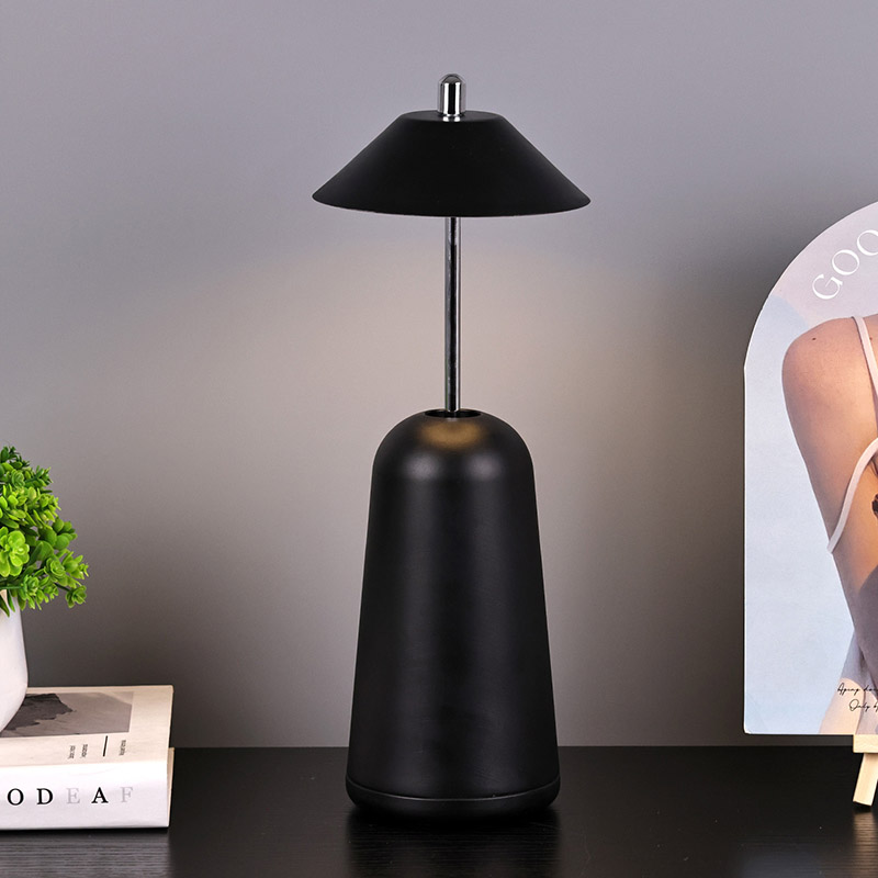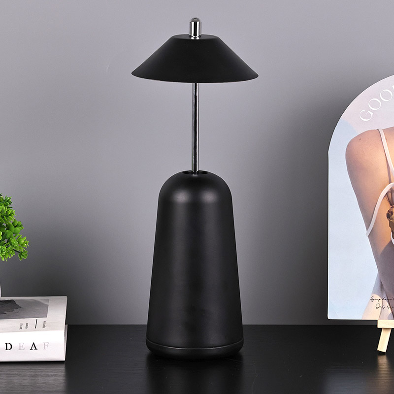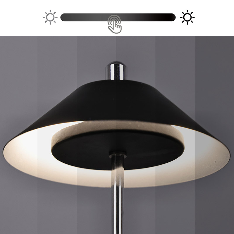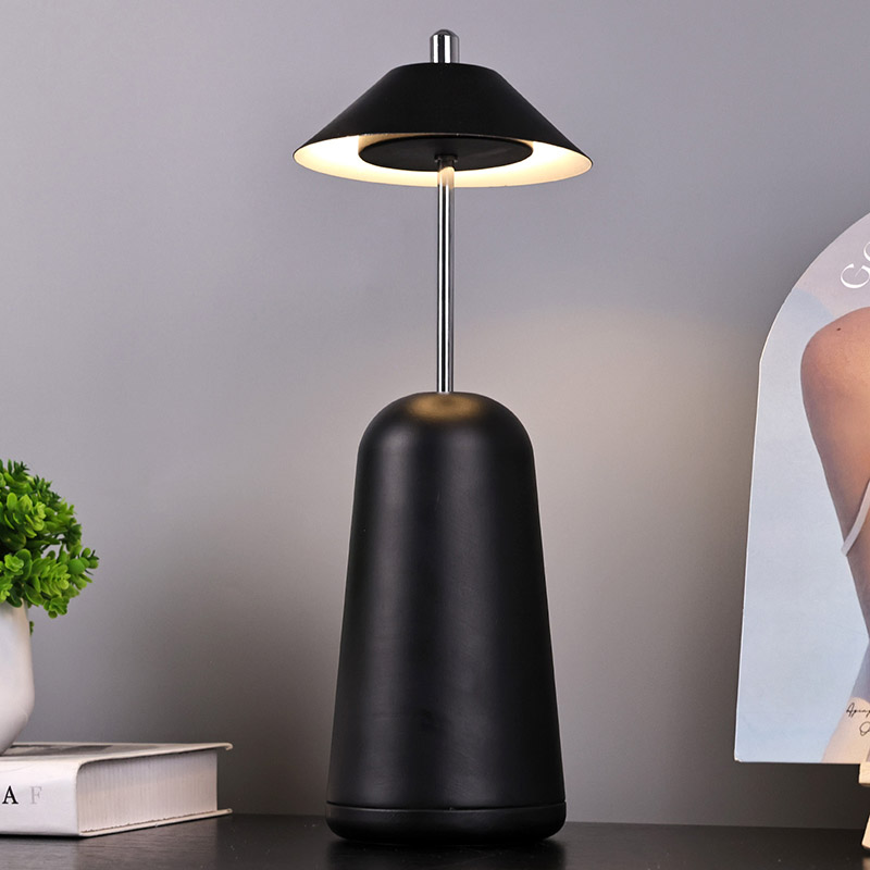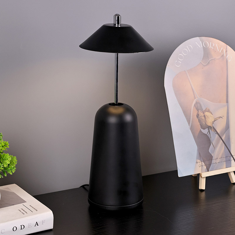 يتم قطع ضوء المصباح المكتبي LED الحديث مع ظل مرتفع قابل للتعديل في عاكس الضوء داخليًا، بألوان دافئة وثلاثة مستويات من شدة الإضاءة تتراوح من 3000 كلفن إلى 6500 كلفن. الجزء العلوي من عاكس الضوء عبارة عن مفتاح لمس يشبه الهوائي. تتكون القاعدة من معدن أسطواني غير منتظم