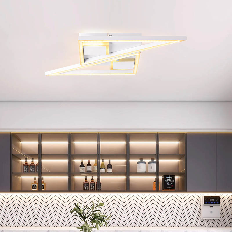 يتميز مصباح السقف المعدني ذو التصميم البسيط والحديث بتصميم هندسي مذهل يتميز بمستويات وزوايا متقاطعة تضفي إحساسًا بالأناقة العصرية. إن خطوط التصميم النظيفة والجمالية البسيطة تجعله مناسبًا تمامًا للديكور الداخلي المعاصر. يضمن هيكل المصباح، المصنوع بشكل أساسي من البلاستيك المتين، أداءً طويل الأمد مع الحفاظ على شكل خفيف الوزن لسهولة التركيب.