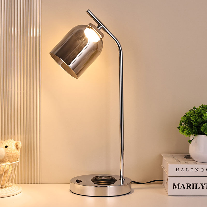 مصباح مكتب QI LED مع غطاء زجاجي بقاعدة وجسم معدنيين
