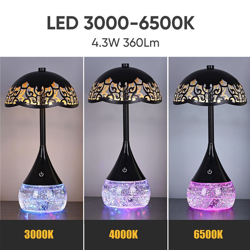 داخل القاعدة ، تضم زجاجة صافية سائلًا يتحرك بشكل غير منتظم ، مما يخلق تأثيرًا بصريًا آسرًا. RGB Color Base LED مصباح مكتب LED مع شكل مظلة ليس أي سائل عادي ؛ تمت صياغته خصيصًا لإنشاء رقصة ساحرة من Shimmer و Swirl. مع تحرك السائل ، فإنه يعكس الضوء في نمط دائم التغير ، مما يخلق تجربة بصرية متطورة باستمرار.