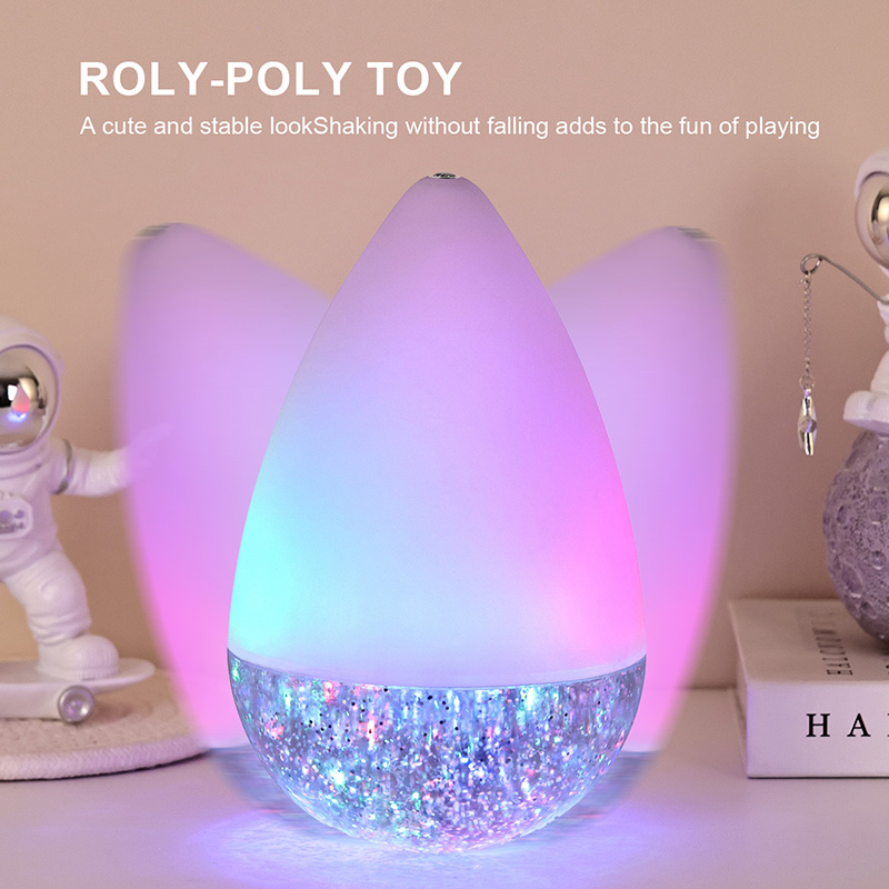 السمة هي أنه بغض النظر عن كيفية اهتزازها، فإن الضوء الليلي للعبة رولي بولي الملونة اللامعة RGB سيصمد