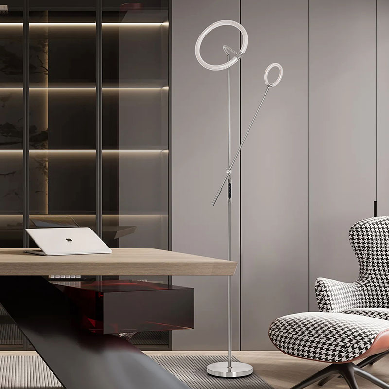 تصميم الإضاءة البيئية لا يمنح المصابيح تأثيرًا بصريًا فريدًا فحسب، بل ينشر الضوء أيضًا بشكل فعال، مما يجعل الضوء أكثر نعومة وأكثر تجانسًا. تم صقل ومعالجة عمود المصباح وقاعدة هذا المصباح الأرضي بدقة، مع سطح أملس ورقيق وملمس مريح لليد،