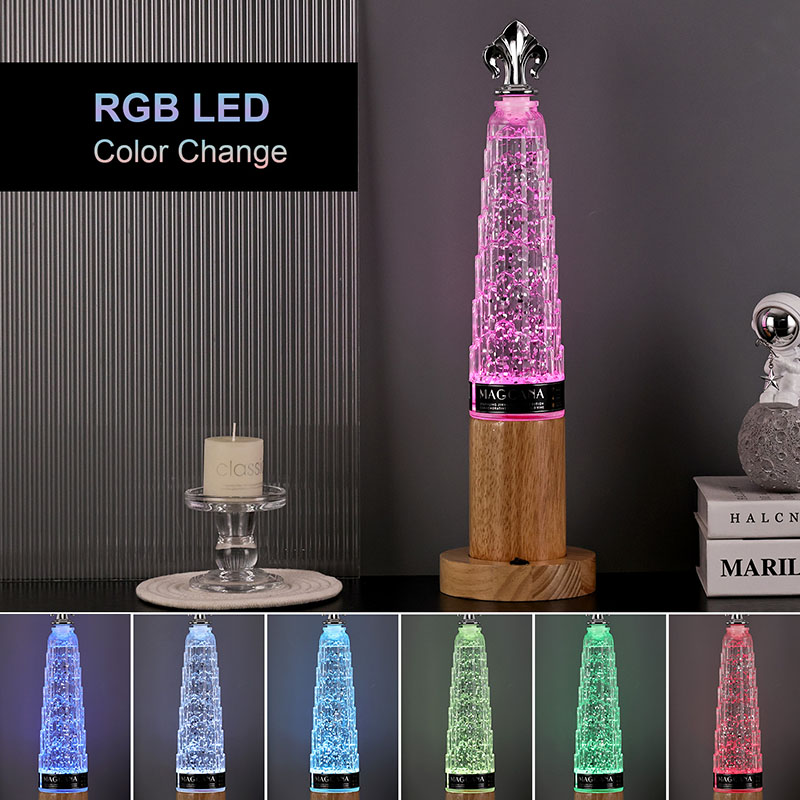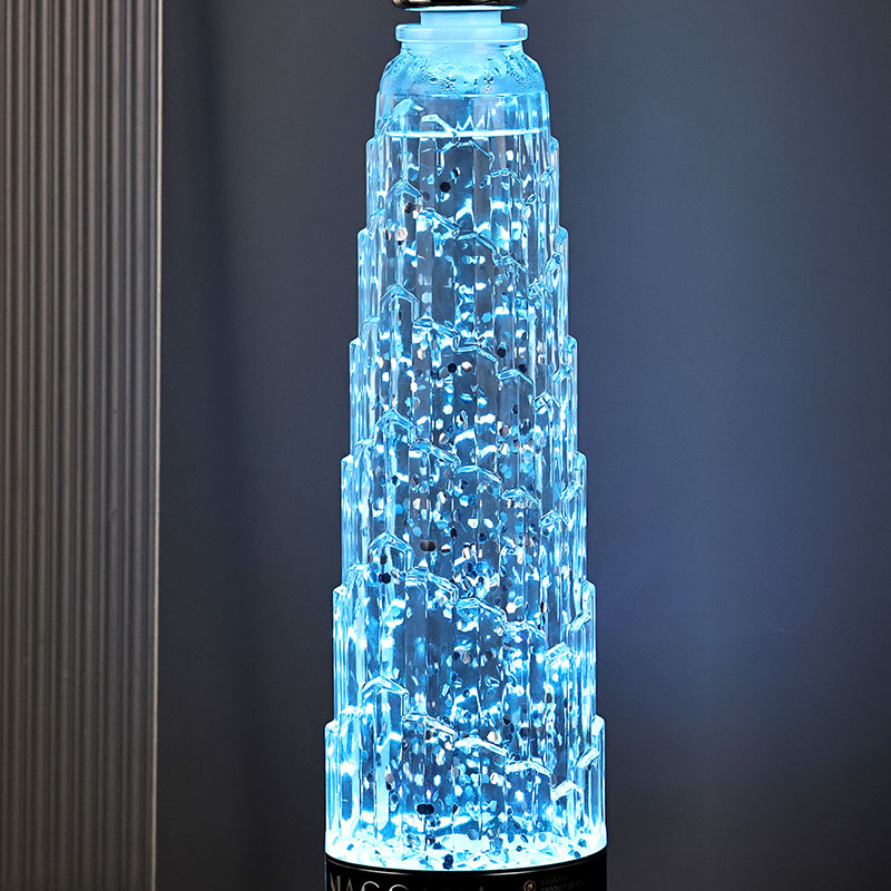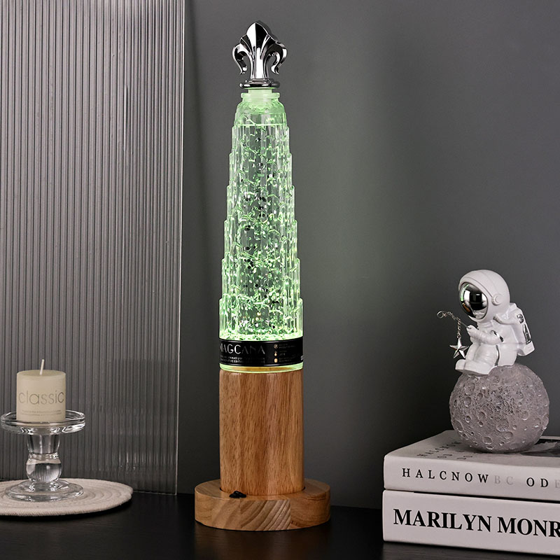 يعتمد مصباح الطاولة اللامع ذو الظل البرجي على تصميم كلاسيكي على شكل برج، مع زخارف معدنية رائعة مدمجة في الأعلى، بسيطة ولكنها نبيلة. تحتوي العبوة الزجاجية الشفافة على سائل و