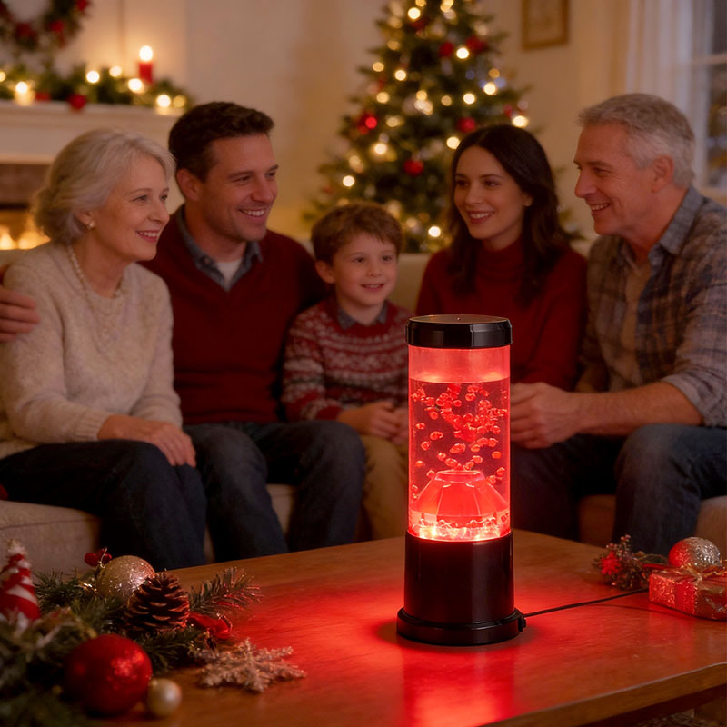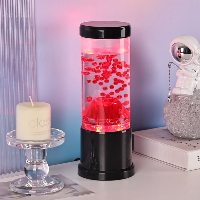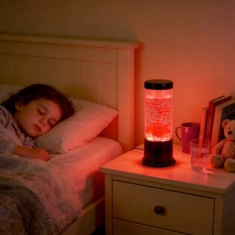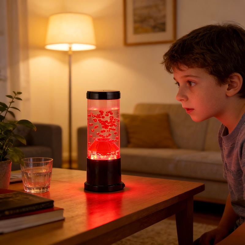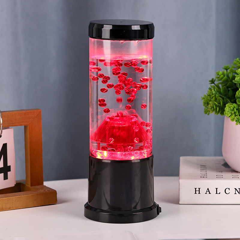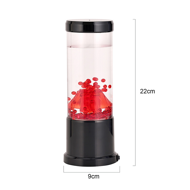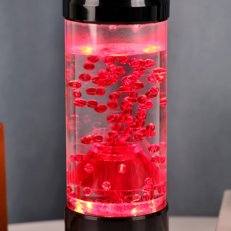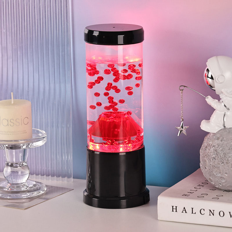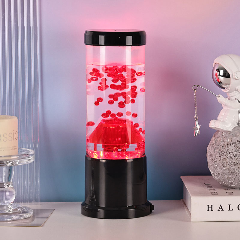 القطعة المركزية للضوء الليلي عبارة عن عمود شفاف يشبه فوهة البركان. ستجد داخل هذا العمود عرضًا نابضًا بالحياة للمجالات الحمراء، التي تذكرنا بالحمم المنصهرة التي تتدفق داخل القشرة الأرضية. تطفو هذه الكرات برشاقة داخل سائل شفاف، مما يخلق تأثيرًا بصريًا ديناميكيًا ومتغيرًا باستمرار. عندما يسطع الضوء من خلاله، فإنه يلقي توهجًا دافئًا وجذابًا، مما يجعله مثاليًا لإضفاء جو مريح في أي غرفة.