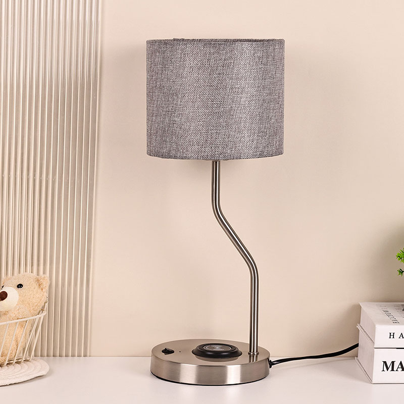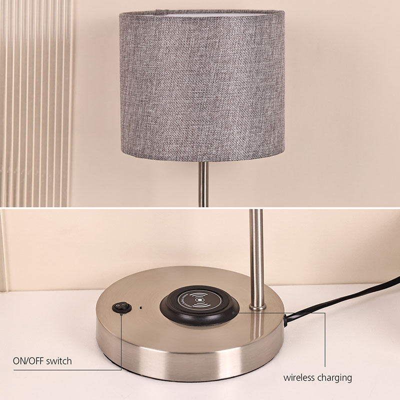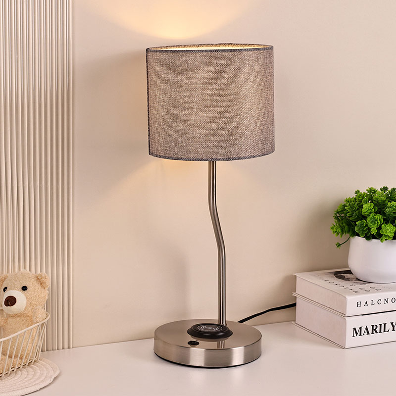 مصباح مكتبي لشاحن الهاتف اللاسلكي مع غطاء من القماش يحتوي على مصباح شاحن لاسلكي بجهد 5V1A