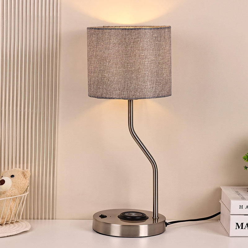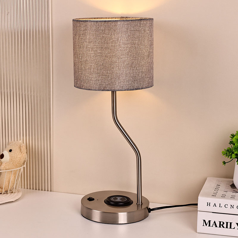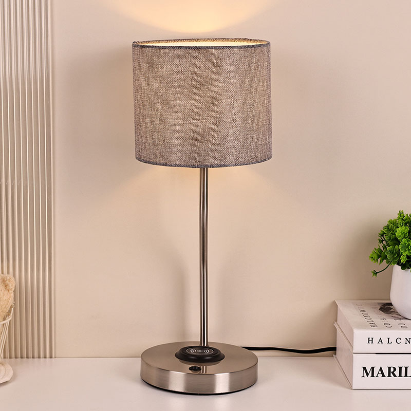 مصباح مكتبي لشاحن الهاتف اللاسلكي مع غطاء قماش مصنوع من غطاء قماش تقليدي